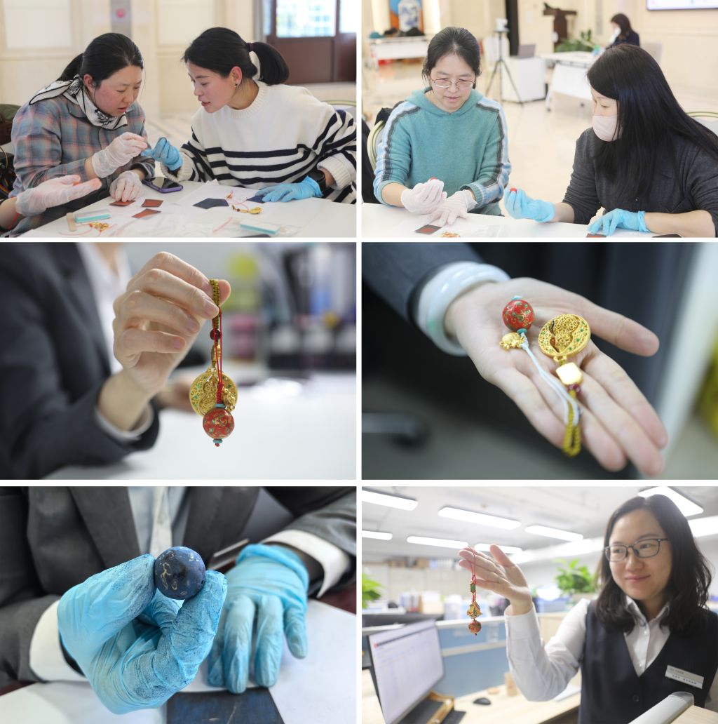 随后的手作环节,各会场同步摆放朱红、翠绿、藏蓝等多色大漆珠材料。老师细致示范选珠、编绳、组装步骤,女员工们发挥巧思:朱红大漆珠配金色葫芦配饰显华贵,翠绿大漆珠配铃铛配饰显清雅……大家专注细节、分享技巧,指尖温度与千年漆韵悄然交融。